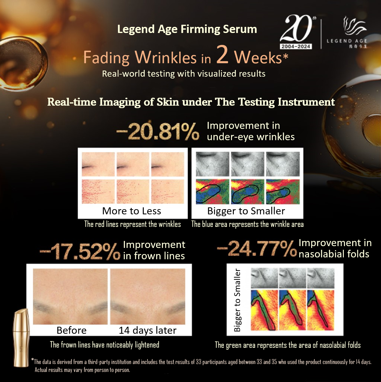 - Visibly reduces under-eye wrinkles, frown lines and nasolabial folds in as little as 2 weeks.