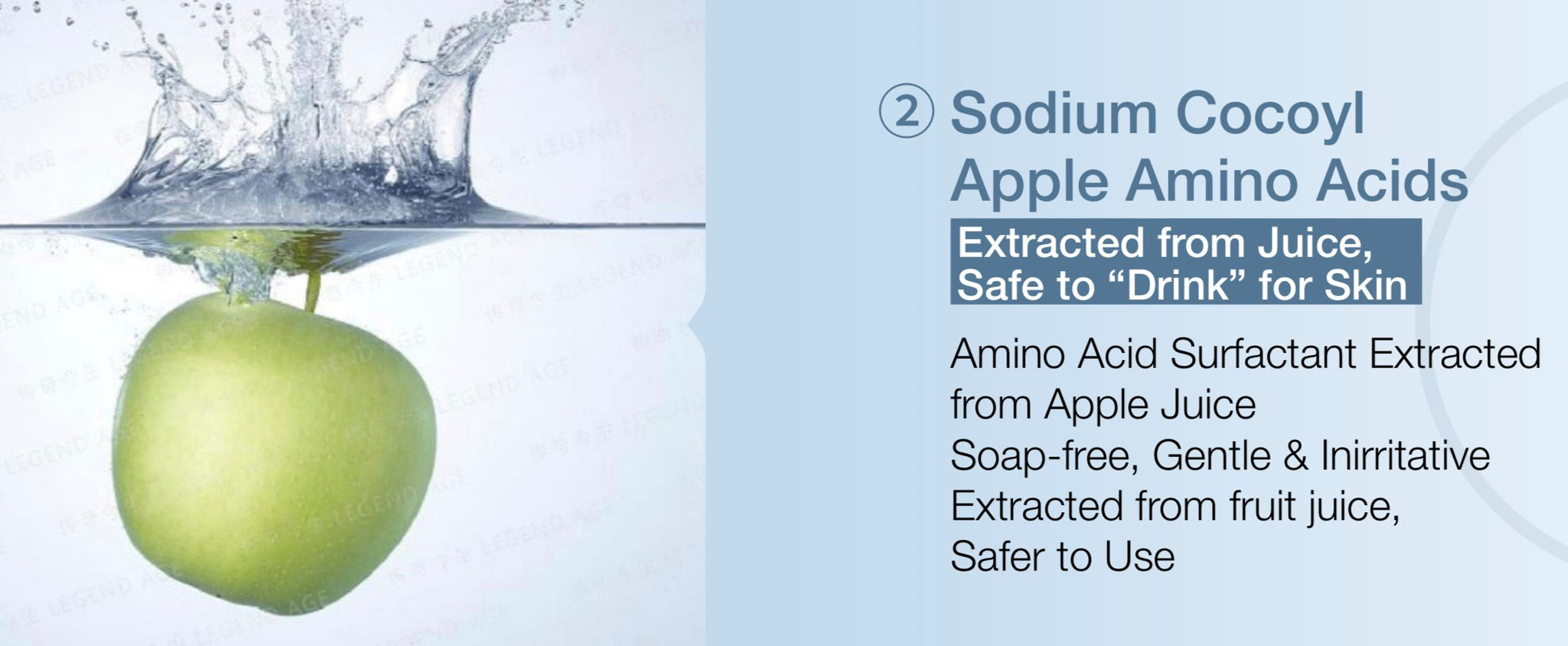 - Sodium Cocoyl Apple Amino Acids (Amino Acid Surfactant extracted from apple juice):